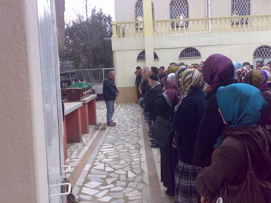 İki ay önce üçüncü çocuğunu dünyaya getiren Güldin kardeşimizin naaşı, doğum sonrası nükseden bir hastalığına bağlı olarak aldığı yoğunlaştırılmış ilaçlar nedeniyle kalp krizi geçirdiği şüphesi ile savcılık tarafından otopsiye kaldırıldı. Otopsiden sonra yıkanıp kefenlenen kardeşimiz evinin önüne getirildi. Yakınları, Özgür-Der'li arkadaşları ve İzmirli bir çok müslümanın toplandığı Buca'daki evinin önünde Hüseyin Alan, Hamza Türkmen, Ayhan Yaraşıklı, İbrahim Gülter tarafından okunan sürelerin Türkçe anlamları Hamza Akdeniz tarafından okundu. Camiye tekbirlerle omuzlarda taşınan kardeşimizin cenaze namazı Hüseyin Alan tarafından kıldırıldı. Güldin kardeşimizin cenaze namazı cemaatini erkek ve kadın yakınları oluşturdu. Hüseyin Alan cemaate, Güldin Çaktır'ın hayatı içinde İslami kimliği ve vahyin şahitliğini taşıyıp taşımadığını sordu ve helallik istedi. Kendisi de onun Kur'an eğitimi, tebliği ve bu doğrultudaki mücadelesini hatırlattı ve Rabbimizden mağfiret diledi.