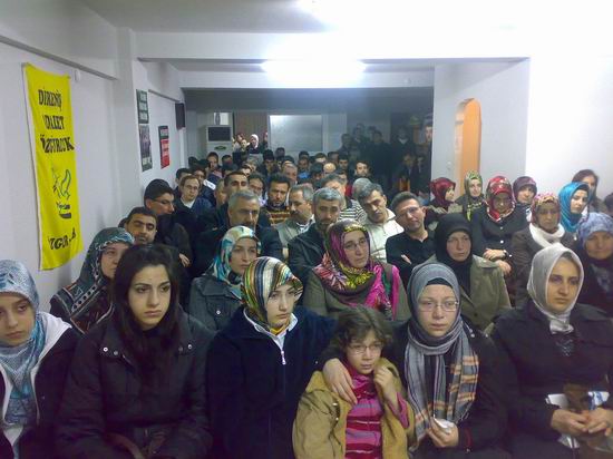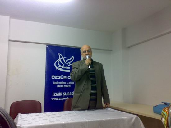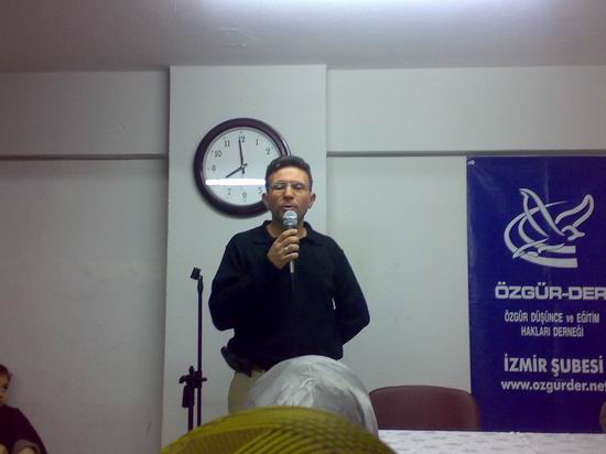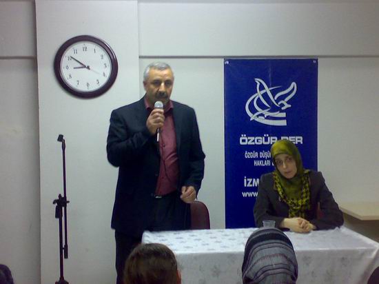 Akşam 19.00'daki Hamza Türkmen'in Özgür-Der'deki konferansı ertelenerek Güldin Çaktır kardeşimizin yakınlarıyla birlikte bir taziye toplantısı yapıldı. Açış konuşmasını yapan Hamza Türkmen, vefat eden kardeşimizle ilgili, onun İslami bilinçlenme ve mücadele süreci hakkında bildiği ve tanık olduğu çabalarını kısaca aktardı. Hastalık sürecinde, vahyi ölçüler çerçevesinde birlikte olduğu mücadele arkadaşlarının nasıl sırayla ikişer ikişer evinde nöbet tuttuklarına, beyinin fedakarlığına değindi. Rahmetli Çaktır'ın, İzmir'de tevhidi kimliğe uygun denilebilecek cenaze ve defin işlemlerine katılanların tümünün memnun olmasındaki hikmet ve samimiyetin, onun ve dava arkadaşlarının yaşamlarındaki şahitlik çabasından kaynaklandığını söyledi. Taziyet merasimi olarak da, kırsal kesimden ve ufak şehirlerden kopup metropollere gelen ve İslam'ı yaşama kaygısı taşıyan insanlar için Kur'ani maslahatı ve meşru örfü gözeterek sınırlı imkanlarla da olsa dernek çatısı altında şehrin göbeğinde buluşarak, olması gereken ibadi sorumluluklarımızı konuşarak ve hatırlatarak bir model oluşturmaya çalıştıklarını ve bunu da aynı gün vefat eden kardeşimizin yakınlarıyla paylaşıp hayata geçirdiklerini belirtti. Türkmen ölümle, doğumla, düğünle veya bayramlaşmayla ilgili bizleri bir araya getirecek bu tür açılımların, Kur'an toplumunu, vahiy nüvelerini yeniden inşa edebilmemiz için örneklendirmemiz ve geliştirmemiz gereken yeni ilmihal konularımız olduğunu vurguladı.