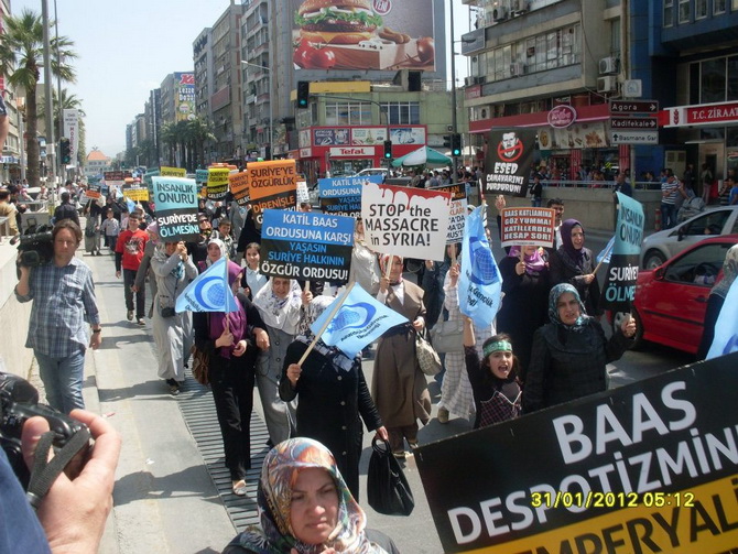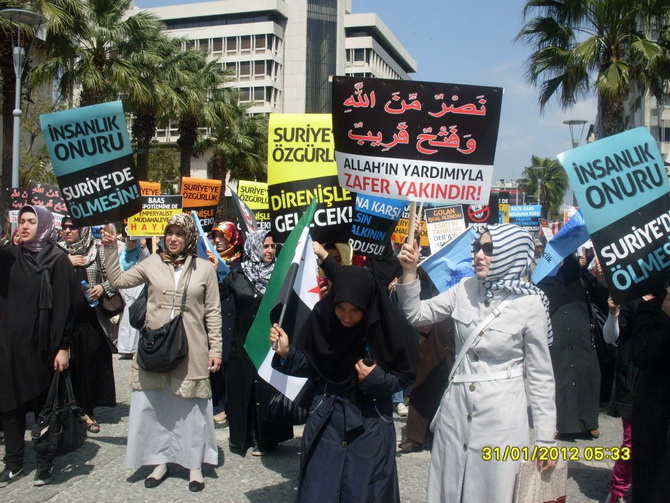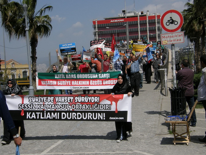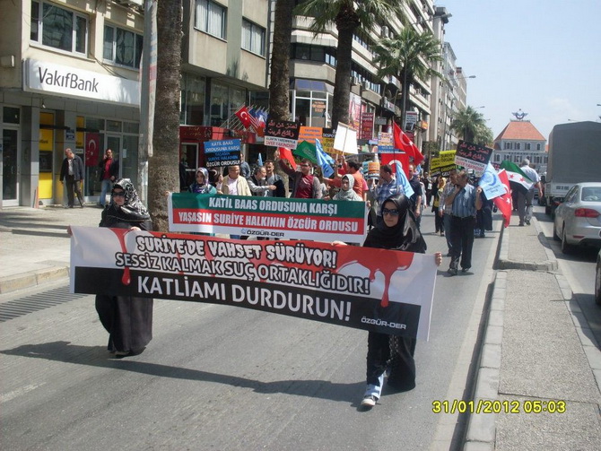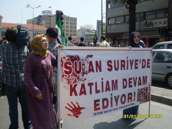 Bizler İzmirli sivil toplum kuruluşları olarak Suriyeli kardeşlerimizin maruz kaldığı bu sistematik vahşetten ötürü büyük bir acı ve öfke; yükselen direnişle ise onur duymaktayız. Suriye yönetimi oyalama taktiklerini terk etmelidir. Özelde İslami muhalefetin, genelde ise Arabıyla Kürdüyle Sünnisiyle Alevisiyle tüm Suriye halkının kendilerini özgürce ifade edebilmeleri, işkence, tutuklanma, kaybedilme korkusu olmaksızın yönetimi eleştirebilme ve serbest seçimlerle değiştirebilme haklarının önündeki tüm engeller derhal kaldırılmalıdır. Baskı ve zulüm politikalarına artık son verilmeli, halkın özgürlük ve adalet taleplerinin gereği olan düzenlemeler vakit geçirilmeksizin yerine getirilmelidir.
