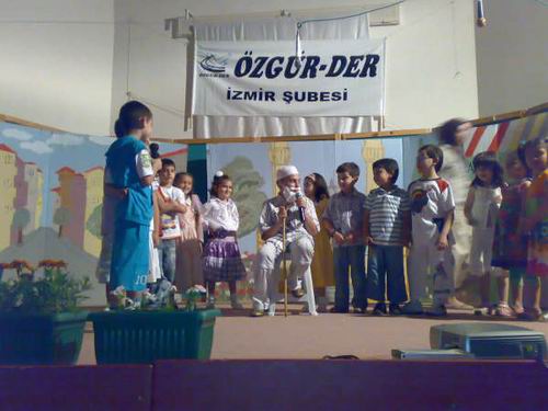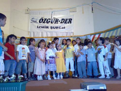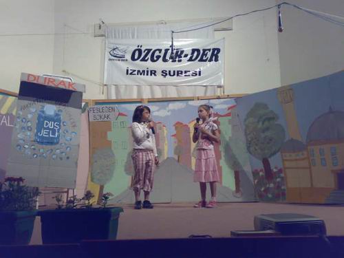 Özgür-Der İzmir Şubesi bünyesinde faaliyet gösteren Özgür Çocuk Kulübü, eğitim döneminin sona ermesi nedeniyle gösteri düzenledi. Murat Reis Camii Konferans Salonu'nda gerçekleştirilen etkinlik, minikler tarafından Haşr Suresi'nin son ayetlerinin mealiyle