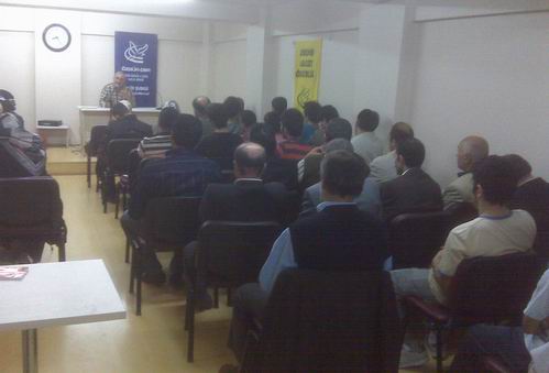 İzmir Özgür-Der'de "Sistem İçinde Ordunun Yeri" başlıklı konuyu sunan Hüseyin Alan, konuşmasına doksan yıl önce ülkeleri işgal edildiği için ayağa kaldırılan, cepheye çağırılan; ama cepheden döndüklerinde yerlerinde başkalarını bulan ve 86 senedir de ayakta bekleyen Müslümanların bayramını(!) kutlayarak başladı.