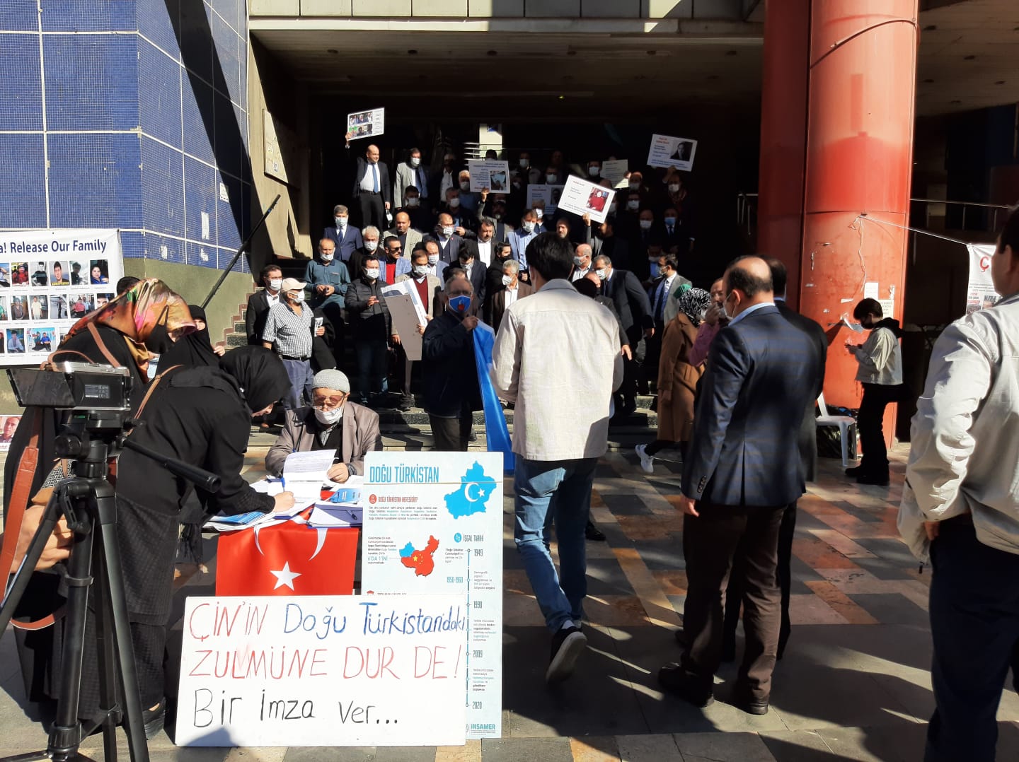 Ayrıca Çin Devleti tarafından aileleri toplama kampına kapatılan Doğu Türkistanlı öğrenciler ailelerine uygulanan insanlık dışı muameleleri anlattılar. Basın açıklamasını okuyan platform sözcüsü Birza Ahmet İlyasoğlu Uygur Türklerinin zorla ailelerinden ayrılıp toplama kamplarında derdest edildiğini vurguladı. İHH Başkanı Yusuf Bülbül de "Kardeşlerimize yakınlarına kavuşmaları ve Çin zulmünün sona ermesi için destek verdiğimizi buradan duyuruyoruz” ifadelerini kullandı. Basın açıklaması sırasında "Müslüman uyuma kardeşine sahip çık, Toplama kampları kapatılsın, Yaşasın bağımsız Doğu Türkistan, Direnen Türkistan kazanacak" sloganları atıldı. Etkinlik yaşanan zulümlerin sona ermesi adına yapılan dualar ile son buldu.