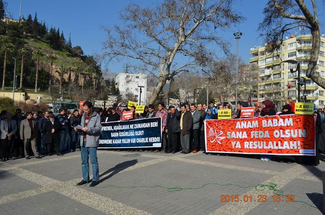 Kahramanmaraş Özgür-Der temsilciliği Hz. Muhammed(s)’e yapılan karikatür ahlaksızlığını ve bu ahlaksızlığın kaynağı olan zihniyeti telin etmek için Ulu Cami Meydanında Cuma namazı sonrası protesto gösterisi düzenledi.