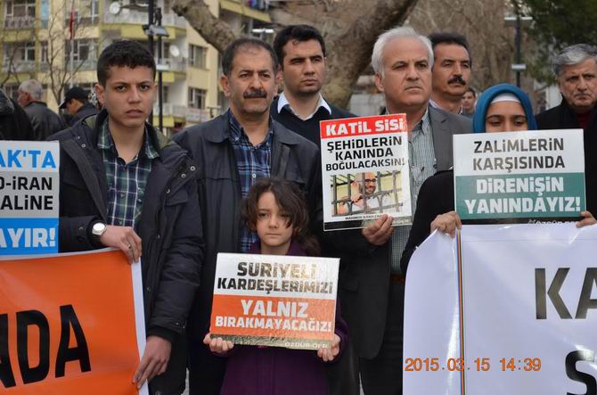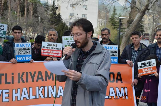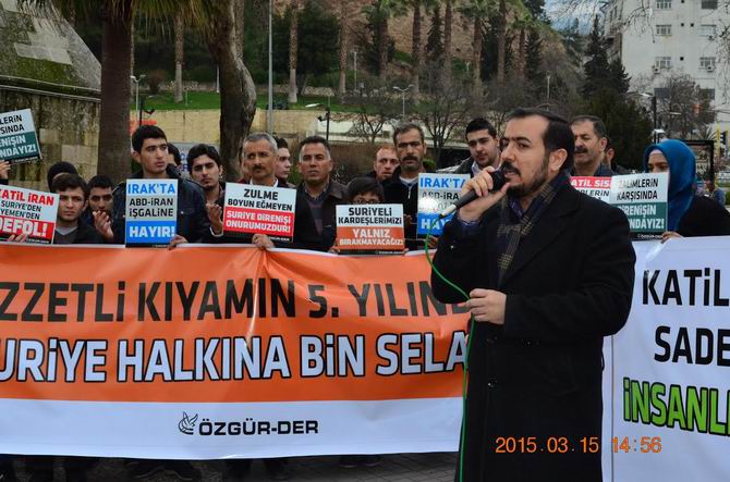 Bugün, Suriye'de katil Esed'in barışçıl gösteriler yapmak suretiyle sokağa dökülmüş olan mazlum halkın üzerine kan kusmasının üzerinden tam dört yıl geçti. Bu zaman dilimi içinde 300 bin insan hayatını kaybetti. On binlerce çocuk ve kadının da insanlık dışı yöntemlerle katledildiği zulüm diyarından milyonlarca kişi de topraklarını terk etmek zorunda kaldı. Kimyasal silahları, varil bombaları, füzeleri ve tanklarıyla hiçbir savaş hukukunu gözetmeden, ekmek sırasında bekleyen masum insanları dahi acımasızca öldüren Esed ve çıkarcı yandaşları Allah'ın hesabından kaçamayacaktır. Sadece Kahramanmaraş'ta 60 bin civarında muhacir bulunmaktadır. Hakkıyla ensarlık yapamadığımız Suriyeli kardeşlerimizi kendi öz canlarımızdan ayırmıyor bizlere ümmet olmayı emreden Allah'ın ipine sımsıkı sarılmayı şiar edinmekten vazgeçmiyoruz.