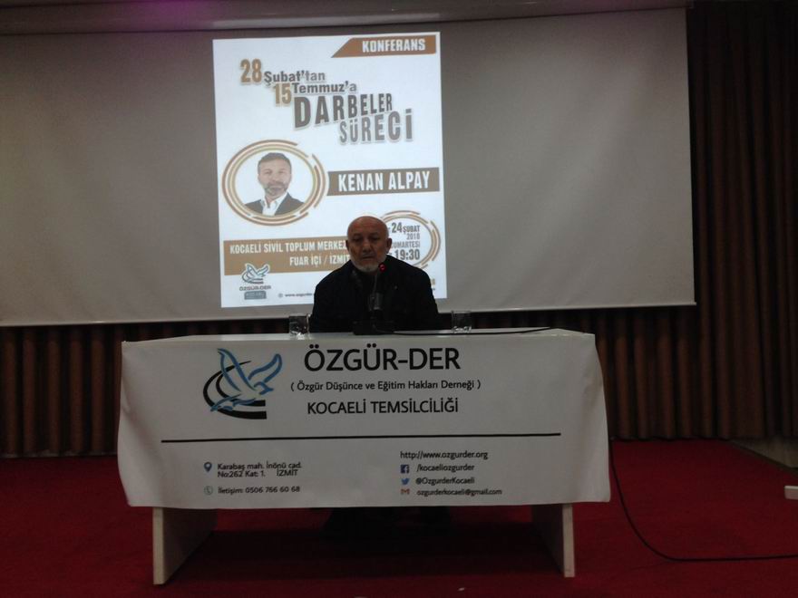 28 Şubat darbesinin 21. yıldönümü vesilesiyle Kocaeli'de Özgür-Der'in organize ettiği ve Kenan Alpay'ın konuşmacı olarak katıldığı bir program yapıldı.