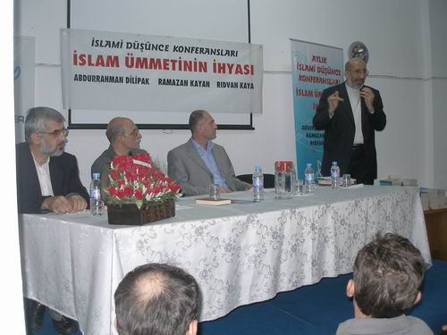 İlk konuşmacı Abdurrahman Dilipak: İslam, ümmet ve ihya kavramlarının karşılıklarını vererek konuşmasına başladı ve kaybedilen bir şeyin nerede nasıl kaybedildiğini bilmemiz gerekir, tekrar ona kavuşmak için ise neden kaybedildi ise o şeylerden vazgeçmemiz gerekliliğini vurguladı. Tarih içerisinde yaşanmış yanlışları aklıselim ile tahkik edeceğiz, tarihe küfretmeden ders çıkararak yanlışlarımızı düzelteceğiz. Moskova'da yaşayarak cennete gitmek mümkün olabilirken Mekke'de yaşayarak cehenneme gitmemiz mümkündür. İslam kelimesi seleme kökünden gelen teslim olmak manasında, esenlik, selamet manasında bir kelimedir. Barış manasındadır. İnsanın kendisi ile, çevresi ile, evren ile barışık olması anlamlarını taşır. Bu barış sağlanamazsa Allah ile savaş başlar. İslam bizi Allah ile barışa davet eder. Ümmet ise İslam dinine icabet eden bir topluluk adıdır. İslam ümmetinin ihyası evrensel bir sorumluluğu beraberinde getirir İslam ümmetinin ihyası bir konferans konusunun başlığı olmamalı, oturup üzerinde uzun soluklu bir çalışmanın adı olmalıdır. Koca bir ümmetin tekrar ayağa kaldırılma çabasından ziyade bizlerin daha küçük ölçekli birimlerimizi ihya çabası içine girme zorunluluğumuz vardır. İnsan en başta kendini, ailesini ve yakın çevresini ihya çabası içerisine girmelidir. İslam da tebliğ yapılması gereken en önemli sorumluluğumuzdur. Müslüman'ın yakın çevresinden başlayarak tüm insanlığa iletmek zorunda olduğu barış mesajı olmalıdır. Sosyalisti, marksisti, kemalisti fark etmez, Hz. Hamza'nın kalbini, ciğerini çıkarıp yiyen vahşi Müslüman oldu ise herkesin Müslüman olma ihtimali vardır. Müslümanların bu gün en çok kelam ilmine felsefe ilmine çalışmaları gereklidir. Tüm evreni kurtaracak bir mesajı iletmek hepimizin üzerinde bir vazifedir.