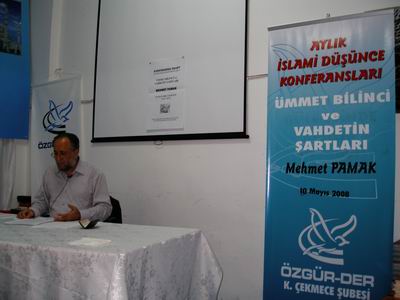 K. Çekmece Özgür-Der şubesinde bu hafta Mehmet Pamak "Ümmet Bilinci Ve Vahdetin Şartları" konulu bir konferans verdi.