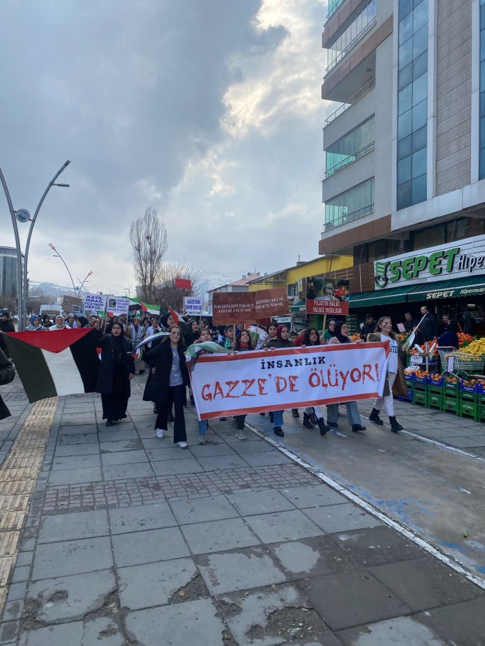 Muş ilinde bugün hanımlara yönelik Filistin İnisiyatifi'nin düzenlediği Muş Mescid-i Aksa Platformu’nun da destek verdiği "Gazze'de insanlık ölüyor katliama dur de" yürüyüşü yapıldı ve basın açıklaması okundu.