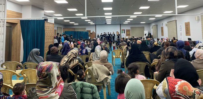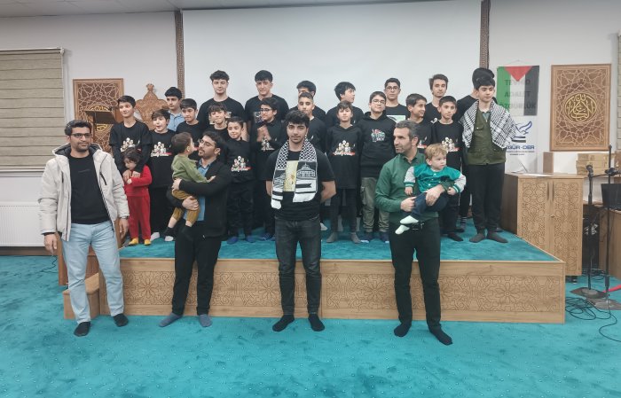 Sinevizyonun ardından liseli gençler dinleyicilerin arasından kalkarak Mescid-i Aksa şiirini okuyarak sahneye geçtiler.