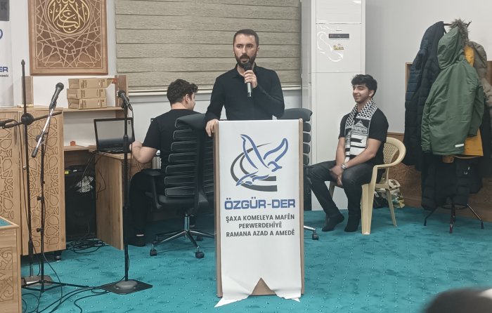 Özgür-Der Diyarbakır Şubesinde düzenlenen Diriliş Gecesi programında sinevizyon gösterimi, konuşma, piyes, şiir ve ezgi dinletisi yer aldı. Programın sunuculuğunu Ebubekır Işık yaptı.