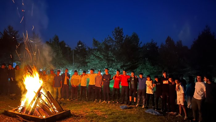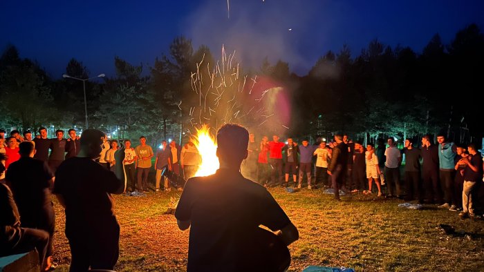 Liseli gençlerin dört günlük kamp etkinliği Grup Yürüyüş solisti Mehmet Ali Aslan ile beraber söylenilen ezgiler ile son buldu.