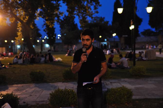 Çorba, simit, hurma ve su eşliğinde yapılan iftardan sonra Eren Özkaradeniz’in okuduğu dua ile program sona erdi.