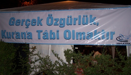 "Her geçen yıl daha da sıradanlaştırılmaya çalışılan ve içi tamamen boşaltılıp sadece bir eğlence ve tüketim ayına dönüştürülmeye çalışılan Ramazan ayının bunlarla hiçbir ilgisinin olmadığı açıktır. Ramazan ayı fedakârlığın, Rabbe yakınlaşmanın, açlığı ve açları yoksulları anlamanın, onların durumlarını hissedebilmenin, kanaatkârlığın, sebatın ve merhametin ön plana çıktığı bir aydır. Mübarek olması ise içinde vahyin indirilmiş olmasındandır. Bu yüzden Ramazan ayını idrak edebilmek Kur'an'ı gündemleştirmekle ancak mümkün olacaktır. 'Gerçek özgürlük Kur'an'a tabi olmaktır!' sloganıyla açmış olduğumuz stant Adapazarı Çark Mesire alanının yanındaki fuar alanında bulunuyor."