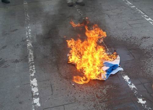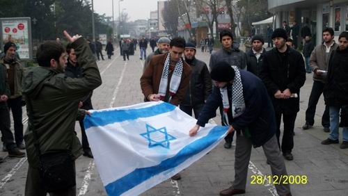 Okunan basın açıklamasının ardından katılımcıların Tekbirler eşliğinde Siyonist İsrail bayrağını ateşe vermeleriyle eylem son buldu.