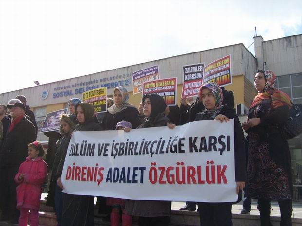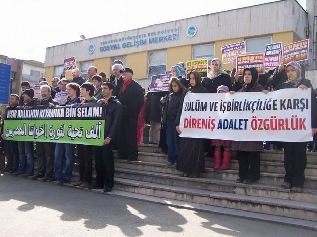 Özgür-Der Sakarya Şubesi ve SABED(Sapanca Bilgi Eğitim ve Dayanışma Derneği)'in Gar Meydanı'nda ortaklaşa olarak düzenledikleri eylemde, Tunus ve Mısır halklarının adalet ve özgürlük merkezli ayaklanmalarına destek verilirken, bu durumun Türkiye'deki muhafazakar kesimlerin durdukları yeri değerlendirme ve sağcı, sığınmacı reflekslerinden sıyrılmaları konusunda bir fırsat olduğu dile getirildi.