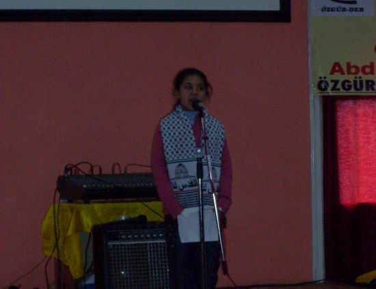 Yoğun bir katılımın katıldığı konferans; İsrail'in yaptığı katliamı ve buna karşı Gazze direnişini ele alan bir sinevizyon gösterisiyle başladı. Özgür-Der çocuk kulübünden bir kız öğrencinin okuduğu "Ben Babamı İstiyorum" şiiri salondakilere duygusal anlar yaşattı. Salondaki duygusal atmosfer Şeyh Ahmet Yasin'in vasiyetinin Özgür-Der çocuk kulübünden iki erkek öğrenci tarafından okunmasıyla daha da arttı.
