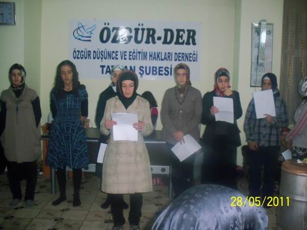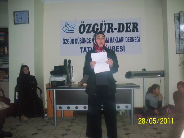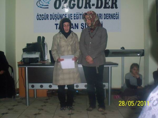 Program Özgür-Der kadın kolları tarafından bayanlara yönelik düzenlendi. Programa Mavi Marmara gemisinde şehit olan Cengiz SONGÜR'ün kızı Sümeyye AKDENİZ ve gemiye Tatvan'dan katılan M. Zeki SÖNMEZLER'in kızları ve yakınları da katıldı. Program Özgür Der üyesi Figen ATALAY'ın okuduğu Kur'an'ı Kerim tilavetiyle başladı.