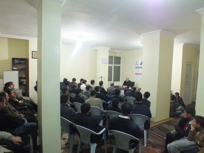 Rıdvan KAYA, mücadele zemininde karşılaştığımız güçlükleri aşabilmek için de düşünsel alt yapımızı tamamlayacak nitelikli çalışmalar ve okumalar içinde olmamaız gerektiğini vurguladı. Müslümanlar olarak hakkı ve sabrı tavsiye çerçevesinde doğruları yaygınlaştırmakla mükellef olduğumuza göre sahih bir akideye sahip olmamız gerektiğini ve aynı zamanda bir dava bilincine erişmemizin zorunluluk olduğunu belirtti.