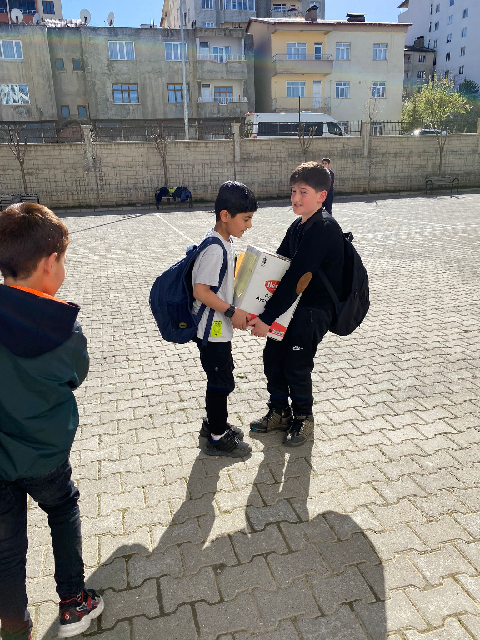 Tatvan Ömer Halis Demir İmam Hatip Ortaokulunda okuyan öğrenciler depremzedeler için yardım topladı.