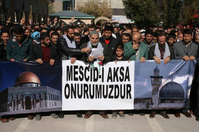 Müslümanlarla Dayanışma İnisiyatifi üyesi Emin Akan'ın yaptığı açıklamada; "İşgal edilenin basit bir yer olmadığı, dünya genelindeki 1,5 milyar müslümanın ilk kıblesi olduğu bunun neticesinde de sadece Filistin'e ve Filistinlilere yönelik olmadığını, İslam âlemine ve onun kutsallarına yönelik olduğunu belirtti. İsrail bölgeyi sadece kendi sembolleriyle donatıp bir Yahudi mabedine dönüştürmek istiyor. Faşist uygulamalarıyla, işgaliyle ve saldırılarıyla bütün semavi dinlerin hukukunu ihlal etmeye devam ediyor. İsrail'in Filistin'deki soykırımına sessiz kalan dünya artık buna 'dur' demeli, insan hakları ihlalleri ve işgal sona erdirilmelidir.