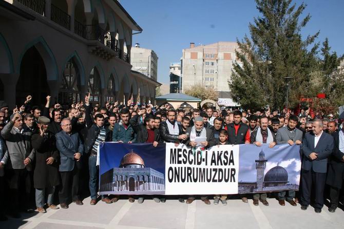 Açıklamanın ardından İsrail aleyhine bir süre slogan atan grup daha sonra dağıldı.