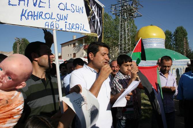Hz. Ebuzer Camii’nde kılınan ikindi namazı sonrası toplanan müslümanlar, ellerinde Filistin’de şehid olanların fotoğraflarının yer aldığı dövizlerle, sloganlar eşliğinde BM Mülteciler Yüksek Komiserliği önüne kadar yürüdü. Burada düzenlediği basın açıklamasında gruba seslenen Müslüman Kardeşler İnisiyatifi gönüllüsü Hayati Beyde, BM’nin yıllardır mazlum milletlere karşı uygulanan zulümler karşısında üzerine düşeni yapmadığını vurguladı. Her zaman olduğu gibi küfrün yine tek millet halinde çalışmaya devam ettiğini belirten Beyde, “Van ilindeki BM temsilciliği aracılığıyla dünyaya sesleniyoruz. Sizler büyük ülkeler olabilirsiniz ama hepinizden de büyük bir güç vardır ki o da mazlum milletlerin dualarıdır. Medyalarınızın sayesinde sesiniz gür çıkabilir, algı oluşturabilir, halkları kazandırabilirsiniz ama unutmayınız ki bütün zalimlerin sesinden daha büyük bir ses vardır o da Allah-u Ekber’dir” dedi.